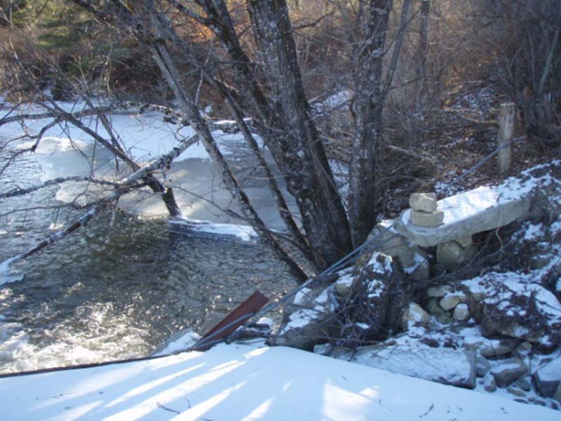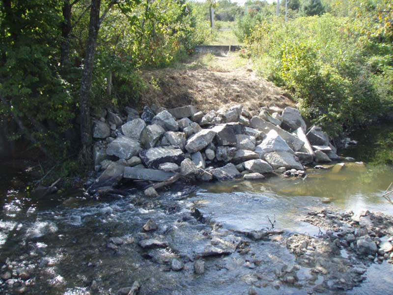 This stream restoration project restored an extremely degraded reach of a river which had collapsed. Restoration work included removal of the fallen concrete bridge decking and remnants of the bridge abutments. Rootwad streambank stabilization techniques stabilized the stream banks. River water forces are deflected away from the bank by the root structure, limiting bank erosion. In addition, the roots provide a source of food for aquatic insects, fish habitat and habitat for other aquatic animals. Live stake plantings decrease soil erosion and enhance soil drainage characteristics. The restoration has restored fish passage through this section, stabilized the river banks and prevented continued erosion.